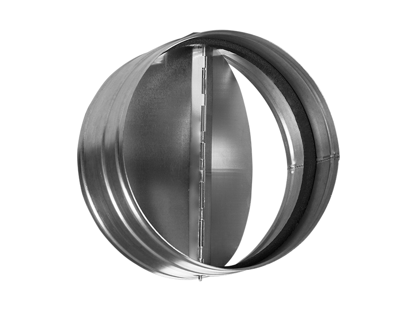 Обратный клапан с подпружиненными лопастями предназначен для автоматического перекрывания круглых воздуховодов при отключении систем вентиляции.