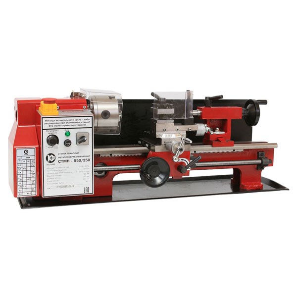 Токарный станок СТМН-550/350 для металлообработки справляется с заготовками с круглым сечением. Двигатель мощностью 400 Вт позволяет непрерывно работать длительное время. Упор для инструмента легко регулируется, заготовка прижимается к шпинделю с помощью задней бабки. Станина из прочного материала поглощает вибрации во время работы. Небольшой размер машины позволяет разместить ее в небольшом помещении. Прозрачная заслонка защищает глаза и лицо оператора во время вылетания искр.