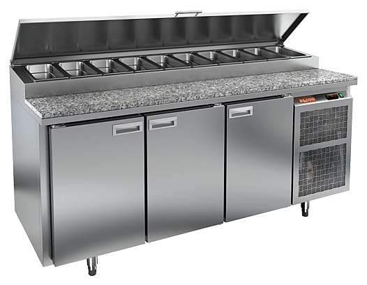 Стол для пиццы HICOLD PZ2-111/GN используется на предприятиях общественного питания и торговли для раскатки теста и обработки ингредиентов, используемых для приготовления пиццы, салатов и других блюд, а также для охлаждения и кратковременного хранения скоропортящихся продуктов и напитков. Модель совмещает в себе рабочую поверхность и охлаждаемый объем, что значительно упрощает работу повара, так как все необходимые компоненты всегда находятся под рукой. Корпус выполнен из нержавеющей стали, столешница - из гранита.