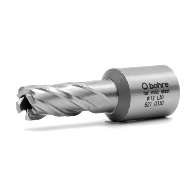 Bohre 12 мм — корончатое сверло длиной 30 мм. Для производства используется быстрорежущая сталь HSS, которую можно затачивать до 10 раз. Производительность работы достигает до 1 см/мин. Хвостовик Weldon подходит для большинства магнитных сверлильных машин. Для увеличения срока службы советуем работать с СОЖ.