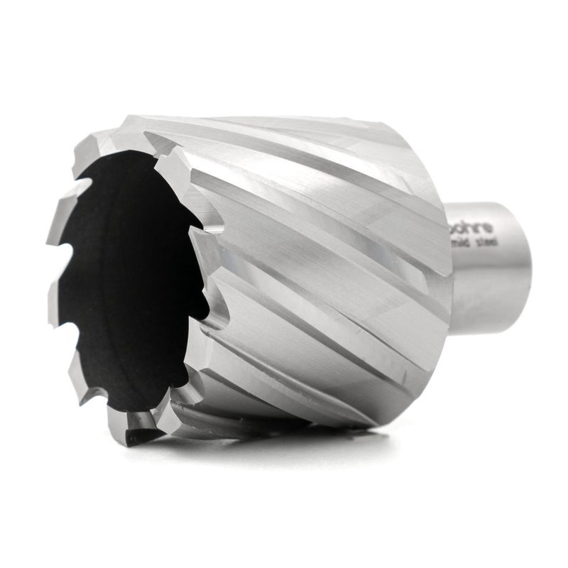 Bohre 46 мм — кольцевая корончатая фреза длиной 30 мм. Для изготовления применяется быстрорежущая сталь HSS, поддающаяся многократной заточке. Производительность проходки составляет до 1 см/мин. Хвостовик Weldon подходит для большинства магнитно-сверлильных станков. Для продления срока эксплуатации рекомендуется работать с СОЖ.