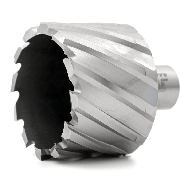Bohre 60 мм — корончатое сверло длиной 30 мм. Для производства применяется HSS-сталь (быстрорежущая), которую можно затачивать до 10 раз. Скорость работы достигает до сантиметра в минуту. Хвостовик Weldon подходит для большинства магнитных сверлильных машин. Для увеличения срока эксплуатации рекомендуем работать со смазочно-охлаждающей жидкостью.