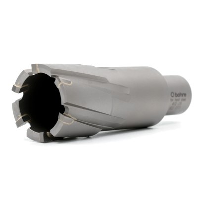 Корончатое сверло TCT Bohre 35х55 мм позволяет получать точные и быстрые отверстия в стальных, оловянных, латунных, алюминиевых, медных и пластиковых заготовках. Подходит для работы со сверлильными станками на магнитной подошве c держателем Weldon 19 мм. Фреза оборудована напаянными пластинами Sandvik Coromant из твердого сплава. Отличается длительным сроком службы и высокой прочностью.