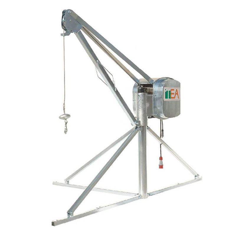 Функциональность: подъем производится поворотной на 360 градусов стрелой. Устойчивая стальная конструкция легко собирается и транспортируется. Диаметр совместимого троса - 7 мм. Максимальная скорость подъема - 22 м/мин.