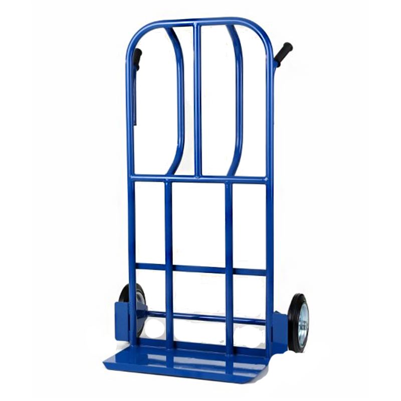 Прочная стальная конструкция Платформа для размещения груза Два литых колеса для движения Рукоять с резиновыми накладками