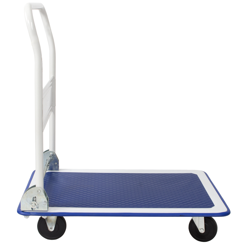 Вместительная стальная платформа Складная съемная рукоять управления Литые колеса для перемещения Возможность поворота для маневренности
