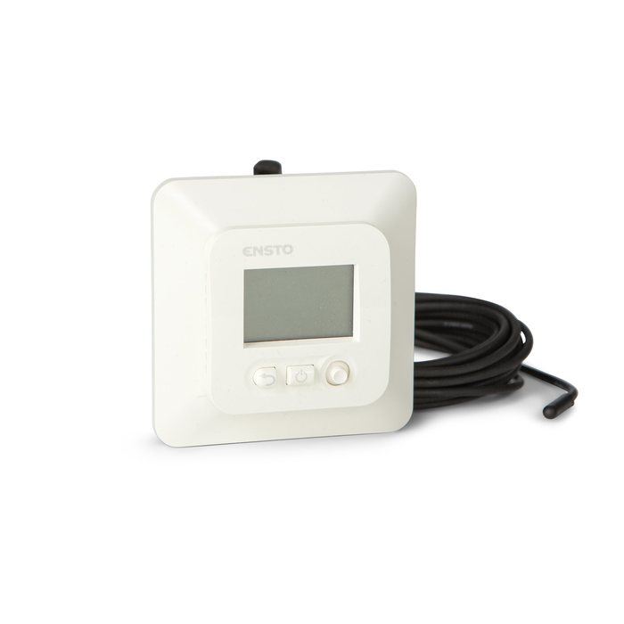 Терморегулятор Ensto (Энсто) ECO16LCDJR оснащен встроенным датчиком температуры воздуха и выносным датчиком температуры пола. Модель имеет электронное управление и оснащена ЖК-дисплеем. Температуру теплого пола можно регулировать в диапазоне от +5 до +37 градусов Цельсия.