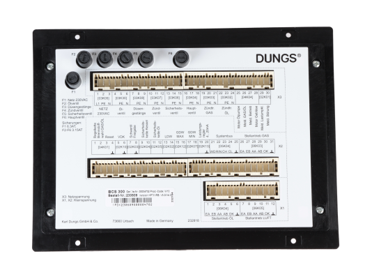 Топочный автомат Dungs BCS 300, артикул: 232510 – электронное устройство контроля и управления всеми функциями горелки. Предусмотрен электронный контроль выделяемых при горении выхлопных газов. Менеджер горения применяется для оснащения многоступенчатых газовых и жидкотопливных атмосферных горелок с постоянным режимом работы. Электроника защищена компактным корпусом класса IP 40. Информация о состоянии системы управления горелкой может отображаться на ЖК-дисплее. Предусмотрен выбор программ автоматического управления работой горелки с учетом области применения и состава оборудования. Допустимые температуры эксплуатации (внешняя среда): от 0 до +60 °C. Питание от сети 230 В.