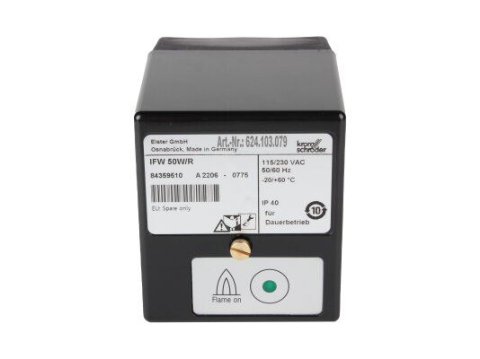 Описание | Топочный автомат Kromschroder IFW50W/R, арт: 84359510 применяется для сигнализации наличия пламени при эксплуатации наддувных жидкотопливных горелок и одновременного контроля нескольких горелочных устройств с прерывистым рабочим циклом совместно с автоматом IFD 450/454. Особенности: