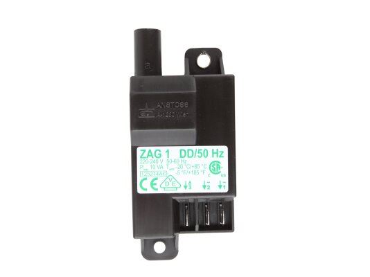 Трансформатор розжига Anstoss ZAG 1 повышает входящее напряжение до высоковольтных значений для быстрого и безопасного поджига топливной смеси электрическим искровым разрядом. Характеризуется высокой эффективностью, надежностью, компактным дизайном. Встраивается в узел розжига горелки.