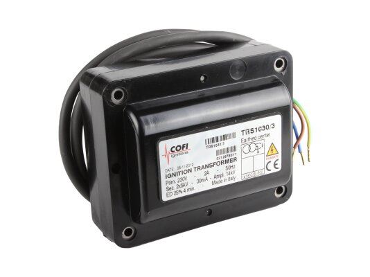 Трансформатор поджига Cofi TRS1030/3, характеризуется высокой эффективностью, мощностью розжига и стабильной работой. Применяется для оснащения узла розжига отопительной горелки.