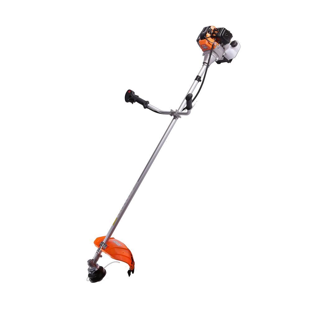 КомплектацияТрехлопастной нож 1шт Защитный кожух с винтами 1комп.Отвертка с торцевым ключом 1штСтяжка 1штКанистра для топливной смеси 1штНож для срезания лески 1штШестигранный ключ 2штДвухсторонний гаечный ключ 1штБоковая рукоятка 1штДвухсторонняя отвертка 1