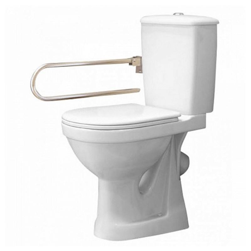 Унитаз компакт ОСКОЛЬСКАЯ КЕРАМИКА персона Комфорт с откидным нерж. поручнем, подвод воды нижний, косой выпуск, 42301120006