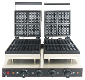 Вафельница Hurakan HKN-GED2M используется на предприятиях общественного питания и торговли для приготовления бельгийских вафель квадратной формы. Модель оснащена регулируемыми термостатами. Корпус выполнен из нержавеющей стали, рабочая поверхность - из чугуна.