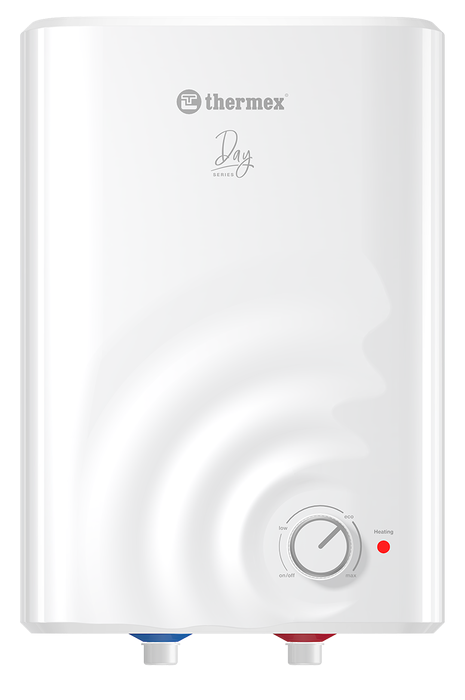 Эффективные электрические водонагреватели российского бренда Thermex серии Day предназначены для установки над раковиной в квартирах и коттеджах. Простой в управлении и установке прибор надежно защищён от протечек и коррозии. Минималистичный дизайн корпуса в белом цвете подходит к любому интерьеру ванной комнаты или кухни.