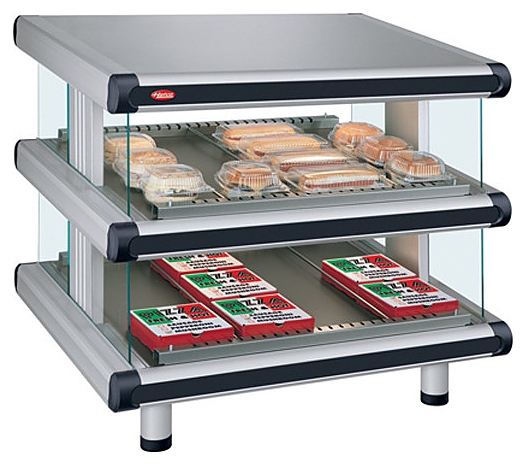Тепловая витрина Hatco GR2SDS-36D предназначена для хранения пиццы, пирожков, попкорна, чипсов в упаковке. Высота модели указана с учётом высоты ножек. Корпус изготовлена из алюминия и нержавеющей стали, боковые панели из закалённого стекла.