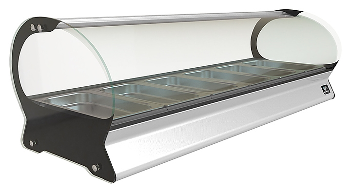 Тепловая витрина КоборSE-4Hсерии Space предназначена для демонстрации, подогрева и поддержания в теплом состоянии различных блюд на предприятиях общественного питания и торговли. Витрина имеет округлые формы и неповторимый дизайн. Модель оснащена светодиоднойподсветкой.