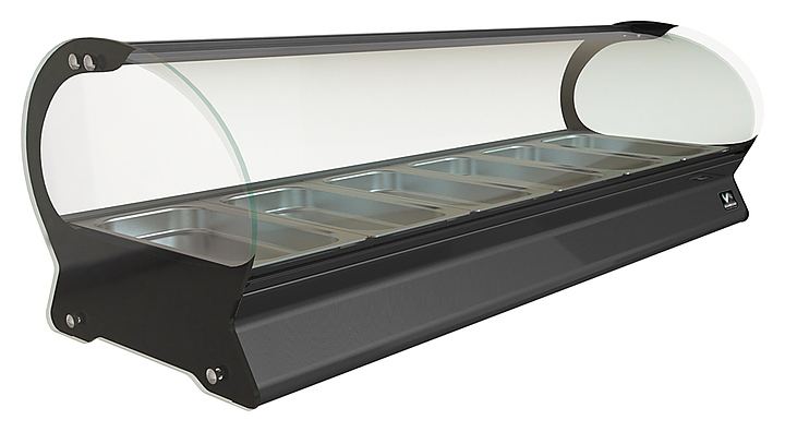 Тепловая витрина КоборSE-5Hсерии Space предназначена для демонстрации, подогрева и поддержания в теплом состоянии различных блюд на предприятиях общественного питания и торговли. Витрина имеет округлые формы и неповторимый дизайн. Модель оснащена светодиоднойподсветкой.