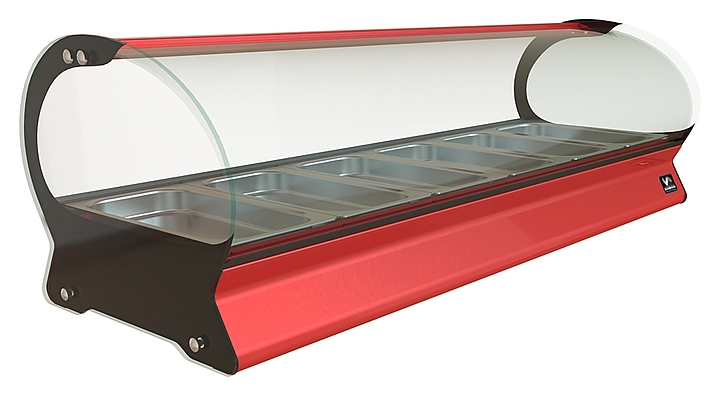 Тепловая витрина КоборSE-5Hсерии Space предназначена для демонстрации, подогрева и поддержания в теплом состоянии различных блюд на предприятиях общественного питания и торговли. Витрина имеет округлые формы и неповторимый дизайн. Модель оснащена светодиоднойподсветкой.