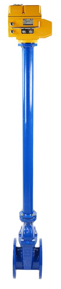 Задвижка клиновая 30ч939р DN GVWN1414E-2W-F Ду65 Ру16 фланцевая, с обрезиненным клиномс ISO-фланцем и круглым штоком, цвет - синий, с колонкой управления F10 (ОСТ тип А, Б) L=2000 и электроприводом DN MT-N-005Z-O1-380VAC-У1 380В