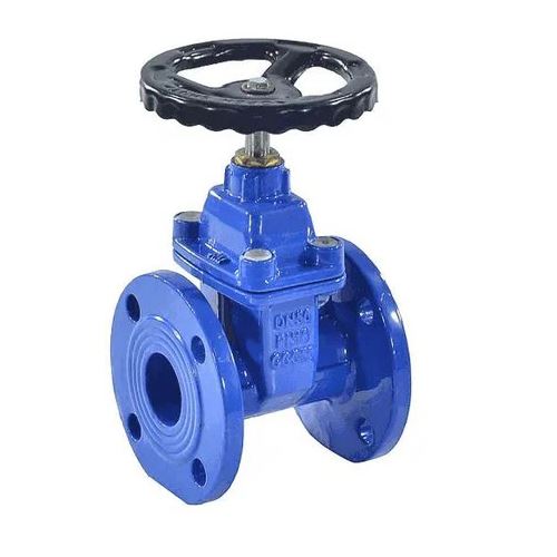 Задвижка клиновая Китай 30ч39р Ду450 Ру10/16 аналог МЗВ фланцевая синяя, корпус - чугун, уплотнение - EPDM, обрезиненный клин, с гайкой Тмакс=120°C, с черным штурвалом и невыдвижным штоком