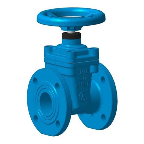 Задвижка клиновая ЛМЗ 30ч39р SL12 Ду50 Ру16 МЗВ фланцевая синяя, корпус - чугун, уплотнение - EPDM, обрезиненный клин Тмакс=150°С, со штурвалом