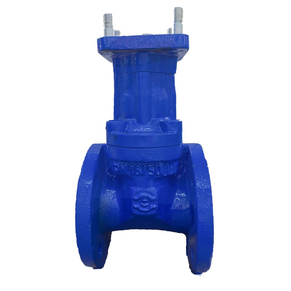 Задвижка клиновая Завод им. Гаджиева 30ч939р Ду150 Ру16 аналог МЗВ фланцевая синяя, корпус - чугун, уплотнение - резина, обрезиненный клин, Тмакс=75°C с невыдвижным штоком под привод