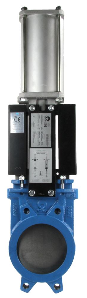 Задвижка шиберная CMO A-01-D/A-E Ду80 Ру8 межфланцевая, клин - однодисковый, корпус - чугун, уплотнение - EPDM, с пневмоприводом двойного действия