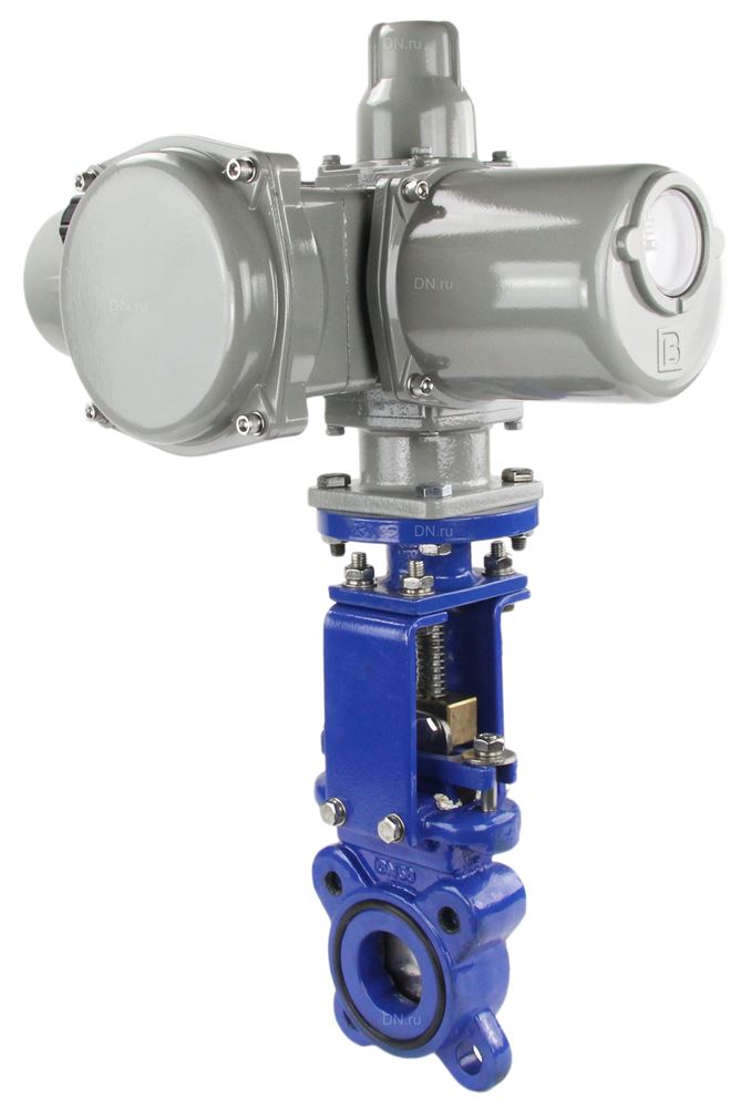 Задвижка шиберная DN Ду80 Ру16/6 двусторонняя, межфланцевая, клин - однодисковый, шпиндель - невыдвижной, корпус - чугун, уплотнение - NBR, с электроприводом ГЗ А.70/24 380В