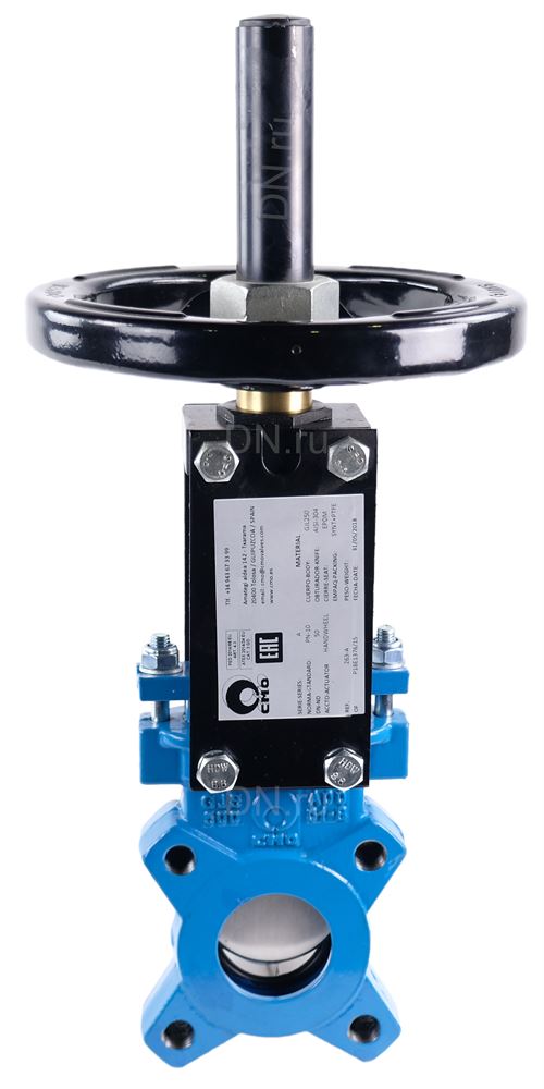 Задвижка шиберная ножевая CMO AB-01-HW(N)-E Ду80 Ру8 межфланцевая, клин - однодисковый, корпус - чугун, уплотнение - EPDM, со штурвалом