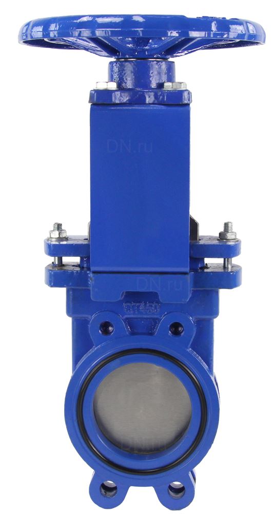 Задвижка шиберная ножевая DN GVKR1331N-2W-Fb-S Ду80 Ру10 двусторонняя, межфланцевая, клин - однодисковый, шпиндель - выдвижной, корпус - чугун, уплотнение - NBR, со штурвалом