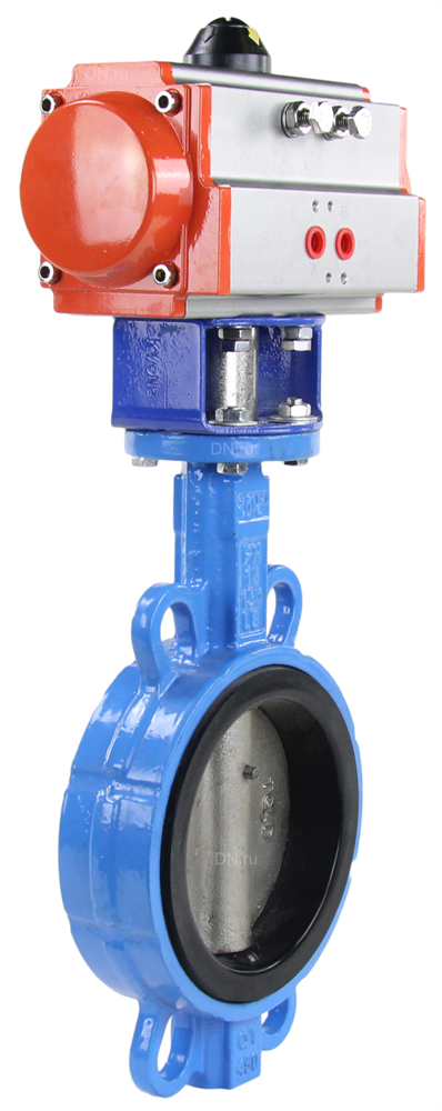 Затвор дисковый поворотный DN WBV1413E-2W-Fb Ду40 Ру16, корпус - чугун GGG50, диск - чугун GGG40, уплотнение - EPDM, с пневмоприводом DN SA-083 с возвратными пружинами